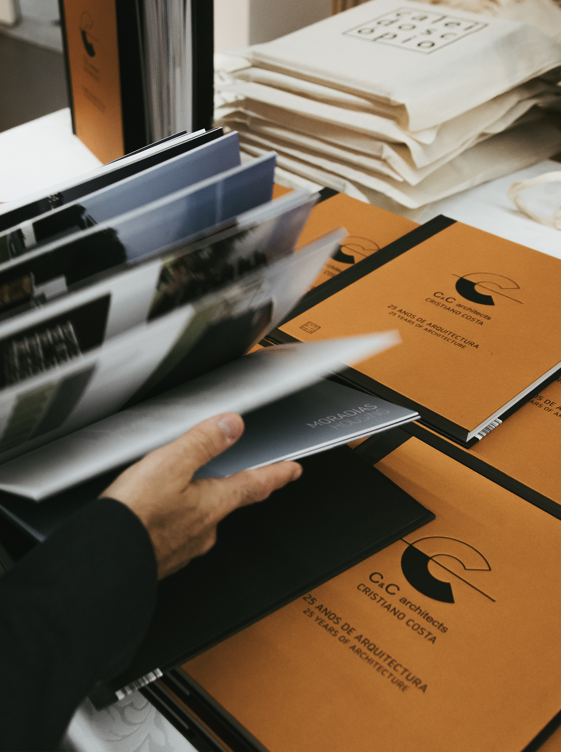 Foi produzido um vídeo de apresentação onde são destacadas algumas das obras já realizadas pela C&C Architects. No entanto, por motivos de planeamento e produção, a versão física da monografia apenas ficou disponível no próprio dia do evento. Para garantir uma apresentação visual consistente e impactante, desenvolvemos uma animação do livro em After Effects, bem como uma animação do logótipo da C&C Architects, ambas integradas no vídeo de apresentação.